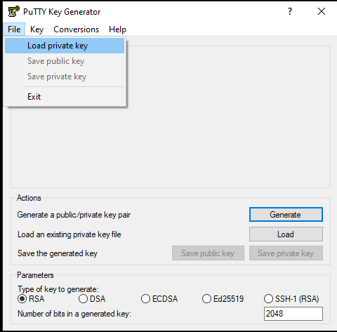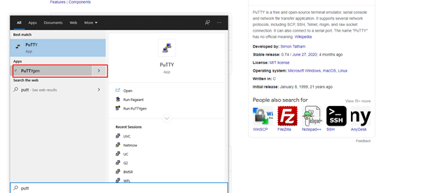 Step 3: After installing open putty open puttyGen from the start menu to create a PPK file from pem.